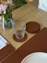 В набор входят 4 подстаканника и подставка. Подстаканники выполнены из натуральной кожи в один слой, диаметр 9 см либо 10 см.
