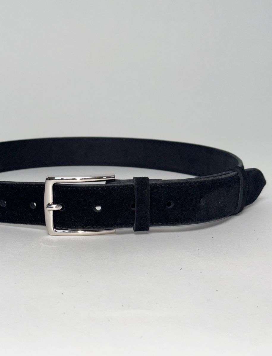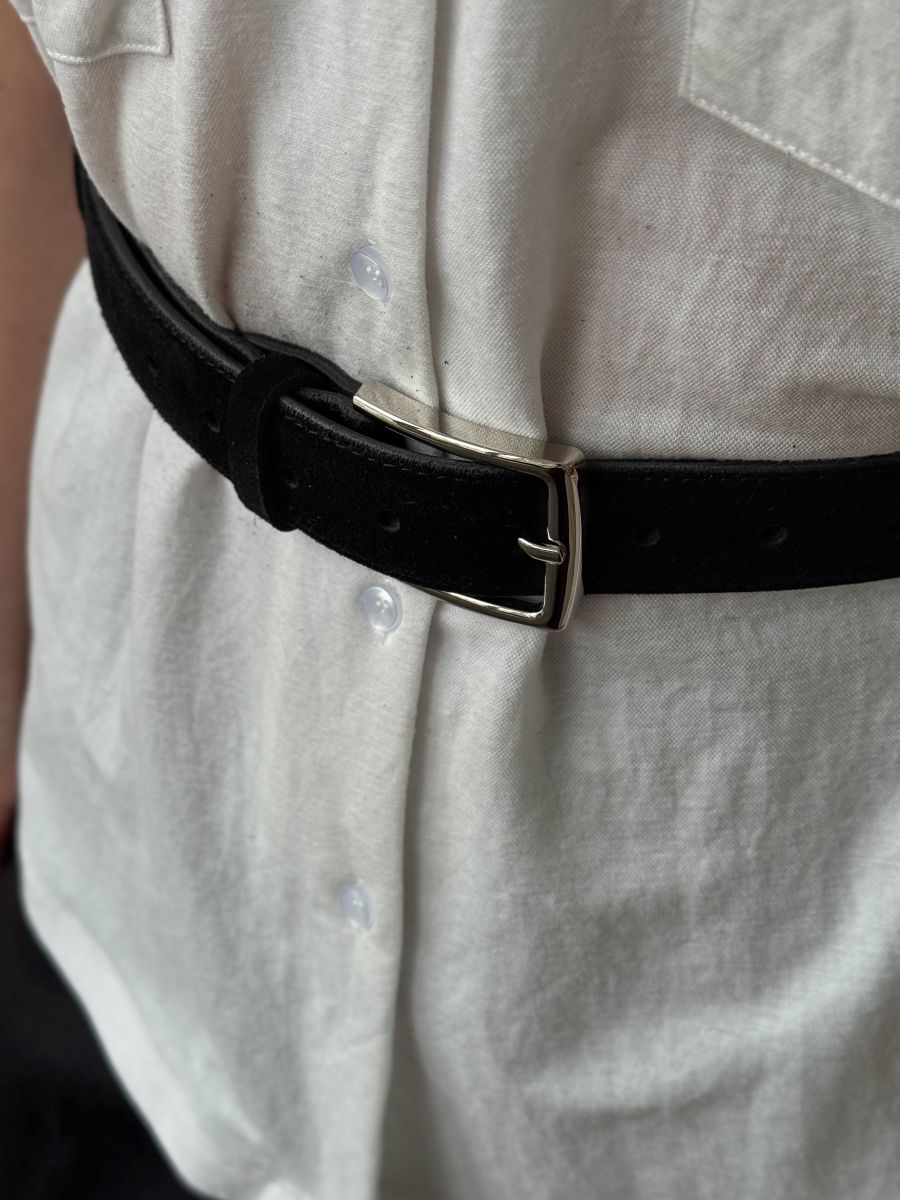 Верх ремня выполнен из качественной натуральной замши, изнанка - натуральная кожа. Ширина ремня 3,5 см. Ремень имеет удобную пряжку с фиксатором, обеспечивающую надежное крепление и комфортную посадку даже после длительного ношения.