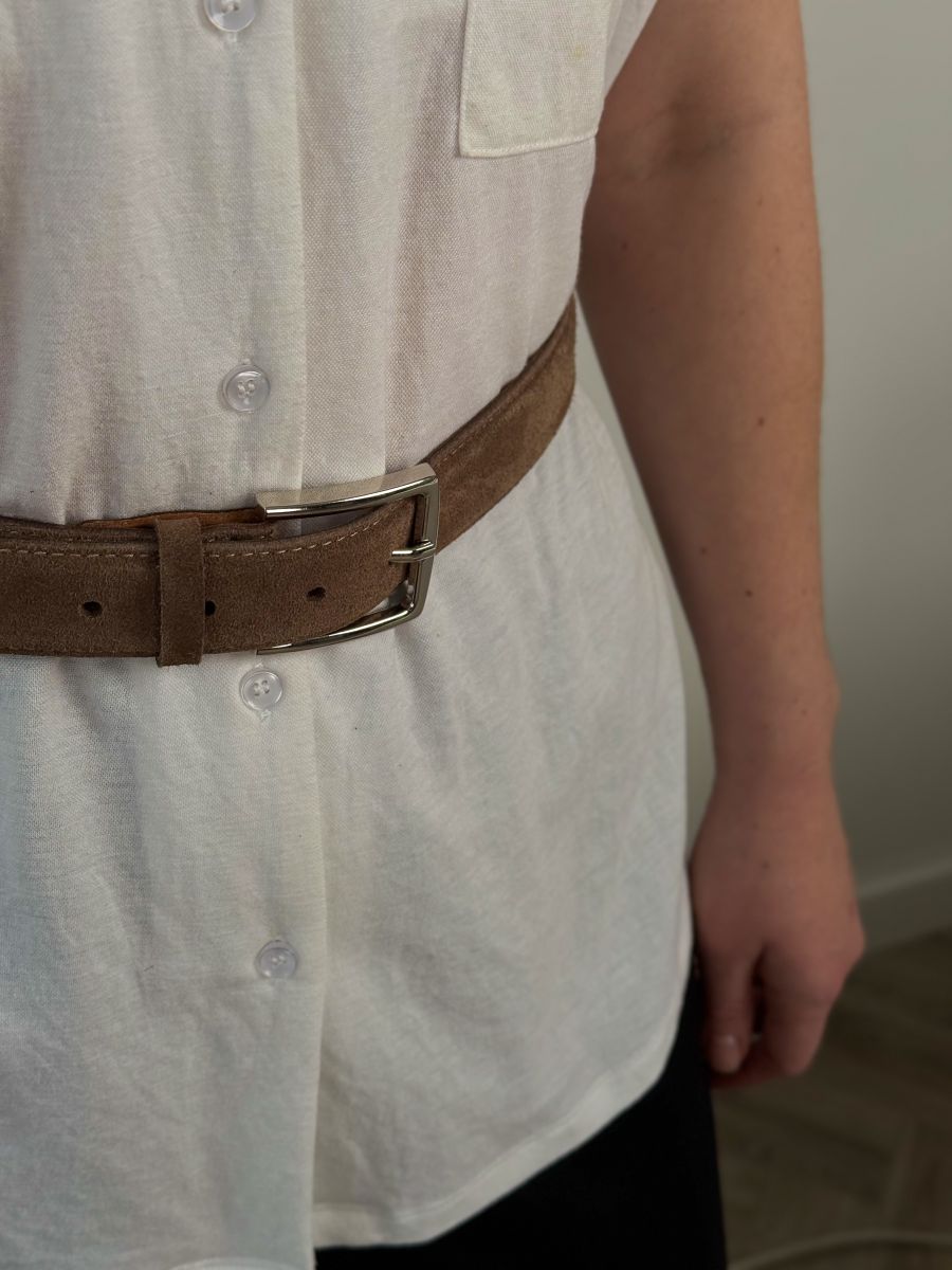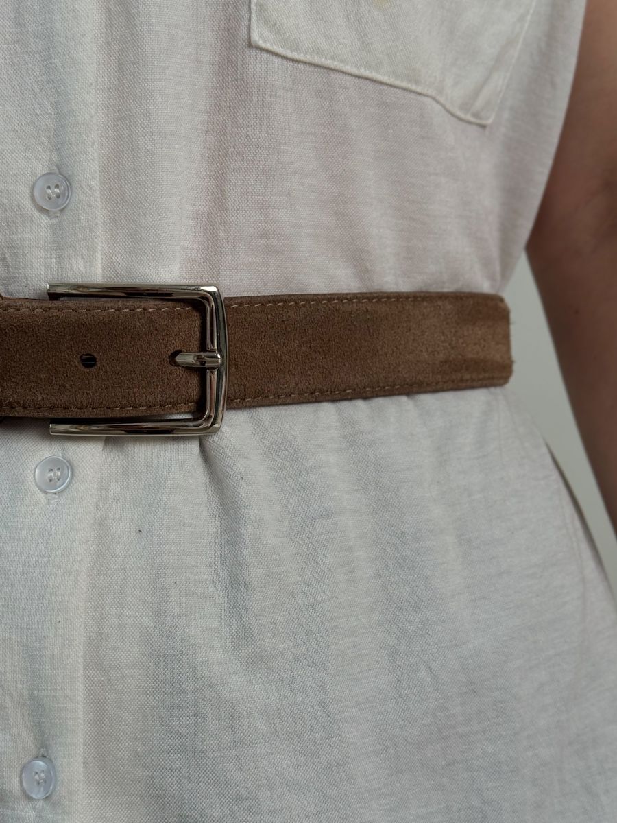 Замшевый ремень - стильный аксессуар, идеально подходящий как для повседневного образа, так и для вечернего выхода. Подиумная форма ремня придает образу особую выразительность и подчеркивает индивидуальность владельца.